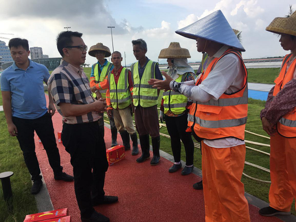 慰問組一行先后來到金山公園、金灣路,分別慰問園林綠化、市政道路管養(yǎng)、水利等一線作業(yè)員工?!?/span>你們辛苦了,感謝你們?yōu)槲拿鞒鞘懈冻龅男燎诤顾团Α保u湘斌董事長(zhǎng)對(duì)他們?yōu)榫S護(hù)城市環(huán)境衛(wèi)生作出的努力表示感謝,進(jìn)一步了解了員工的工作情況及困難,并再次叮囑他們在烈日和高溫下作業(yè)要采取有效防暑降溫和安全生產(chǎn)保障措施,以健康的身體和愉悅的心情投入到工作中。