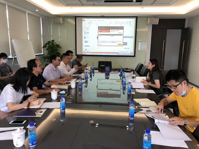 為學(xué)習(xí)產(chǎn)業(yè)招商與管理方面先進(jìn)經(jīng)驗(yàn),了解產(chǎn)業(yè)園區(qū)運(yùn)作模式,交流項(xiàng)目運(yùn)營(yíng)經(jīng)驗(yàn),2020年6月24日上午,聯(lián)港資產(chǎn)公司總經(jīng)理?xiàng)顒P華、副總經(jīng)理葉劍華、總經(jīng)理助理應(yīng)家端一行共10人到清華科技園參觀學(xué)習(xí)。珠海清創(chuàng)科技服務(wù)有限公司總經(jīng)理馮飛燕、副總經(jīng)理?xiàng)钜恪⒄猩谈苯?jīng)理邱木亮陪同講解展廳并組織座談。