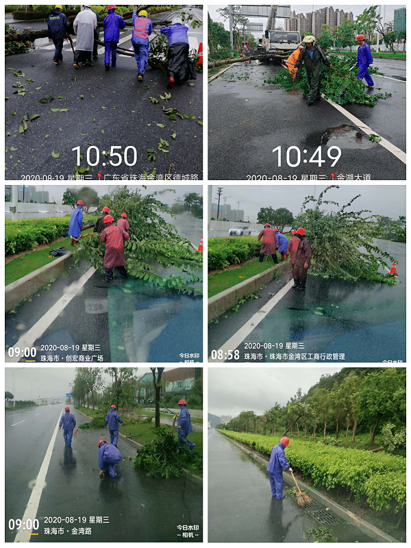 2020年8月19日清晨,第7號(hào)臺(tái)風(fēng)“海高斯”在金灣區(qū)沿海登陸,我司自18日22時(shí)起,按市防臺(tái)應(yīng)急I級(jí)響應(yīng)做好全面的預(yù)防和臺(tái)風(fēng)過后清障工作。