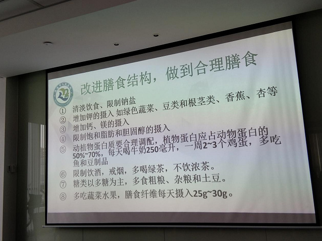 本次講座特邀珠海市人民醫(yī)院預(yù)防保健部卓鳳堅副主任主講。講座以“心腦血管的預(yù)防及營養(yǎng)調(diào)理”為主線,講解了高血壓、冠心病的診斷、發(fā)病的危險因素、并發(fā)癥及預(yù)防心腦血管疾病相關(guān)聯(lián)的知識點。并從不良飲食、休息、心理帶來的危害到改變膳食結(jié)構(gòu)、合理均衡飲食、戒煙限酒、適量運動、心理調(diào)適等方面均做了詳細講解,闡述了遠離心腦血管疾病,保證身體健康的要點及方法。