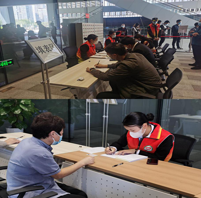 在發(fā)布大廳疫苗接種現(xiàn)場(chǎng),醫(yī)護(hù)人員一早已經(jīng)到位,市民服務(wù)中心各進(jìn)駐單位人員陸續(xù)來(lái)到現(xiàn)場(chǎng)排隊(duì)等候接種第三針疫苗。工作人員主動(dòng)靠前,設(shè)置愛(ài)心志愿服務(wù)崗,認(rèn)真、負(fù)責(zé)的開(kāi)展咨詢(xún)指導(dǎo)、健康碼查驗(yàn)、測(cè)量體溫、信息登記、秩序現(xiàn)場(chǎng)維持和表格填寫(xiě)等志愿服務(wù),同時(shí)協(xié)助醫(yī)護(hù)人員核對(duì)接種疫苗信息,引導(dǎo)接種群眾將棉簽等醫(yī)療廢品放在固定醫(yī)療廢品垃圾桶,配合疫苗接種工作有序、順利、高效的開(kāi)展。