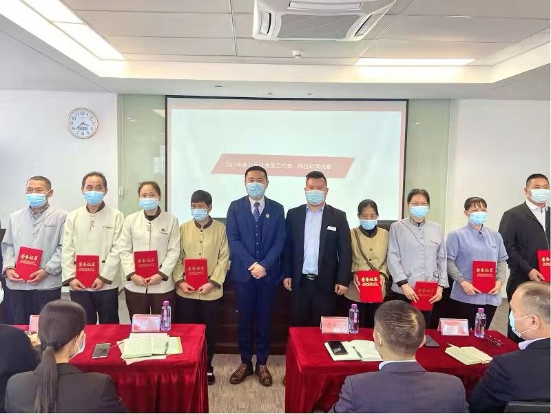 會上,龍總帶領(lǐng)資產(chǎn)公司班子成員為獲得2021年度優(yōu)秀員工、崗位標(biāo)兵和疫情防控先進個人稱號的代表頒發(fā)了榮譽證書,并同他們親切合影留念。