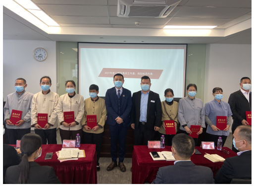 會(huì)上,龍總與資產(chǎn)公司班子成員對獲得2021年度優(yōu)秀員工、崗位標(biāo)兵和疫情防控先進(jìn)個(gè)人稱號的代表頒發(fā)了證書,并在會(huì)后同他們親切合影留念。