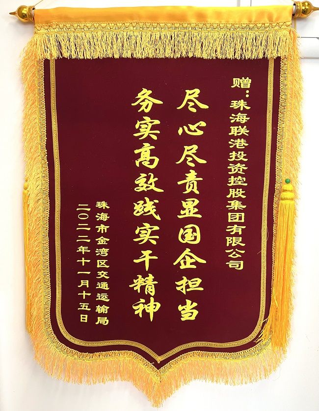 2022年11月15日上午,珠海市金灣區(qū)交通運輸局局長章芳一行領(lǐng)導專程將一面寫著“盡心盡責顯國企擔當,務(wù)實高效踐實干精神”的錦旗送到聯(lián)港集團,衷心感謝聯(lián)港集團在航展期間停車場保障工作中“不講條件、不講困難、不辭勞苦”,勇于擔當、晝夜奮戰(zhàn),緊急處置P6、P8停車場各種應(yīng)急情況,積極引導市民有序入場、熱情地為市民們解答觀展政策,提供航展信息咨詢服務(wù),為市民提供了優(yōu)質(zhì)的觀展體驗,用責任、熱情、耐心守護“藍天盛會”,為航展增添了一抹亮麗的風景。